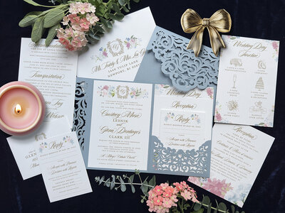 Set the tone for your special event with couture stationery. Your guests will love opening their little works-of-art invitation suites and anticipating your well-crafted celebration to come. You will be able to relax knowing that a professional with many years of experience is taking care of all of the details for you, creating a memorable, perfectly coordinated, oh-so-you branded event from your save-the-dates to day-of items.